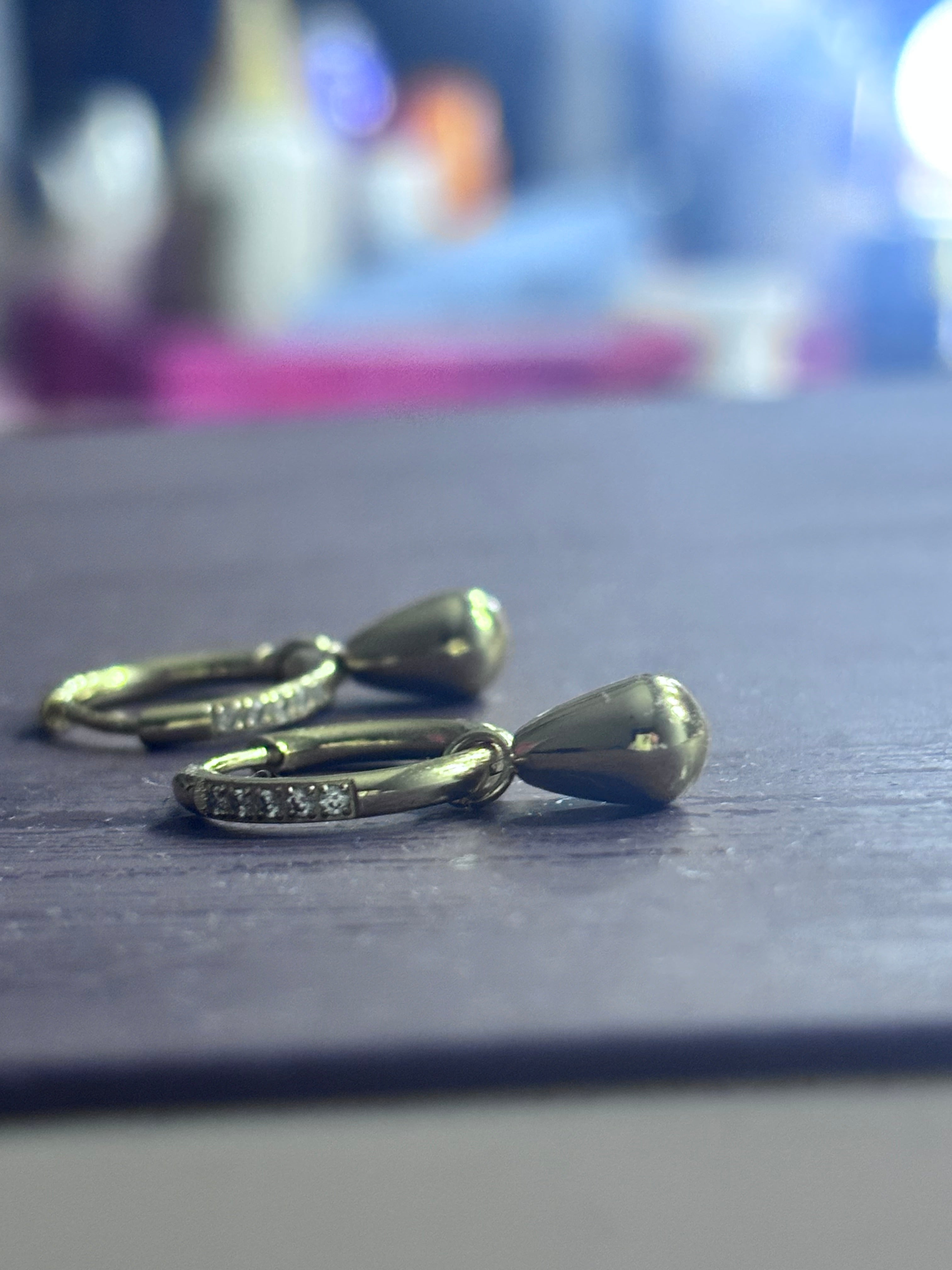 ✨ Minimalistische gouden oorringen gecombineerd met gladde druppelvormige bedeltjes voor een subtiele, elegante glans.