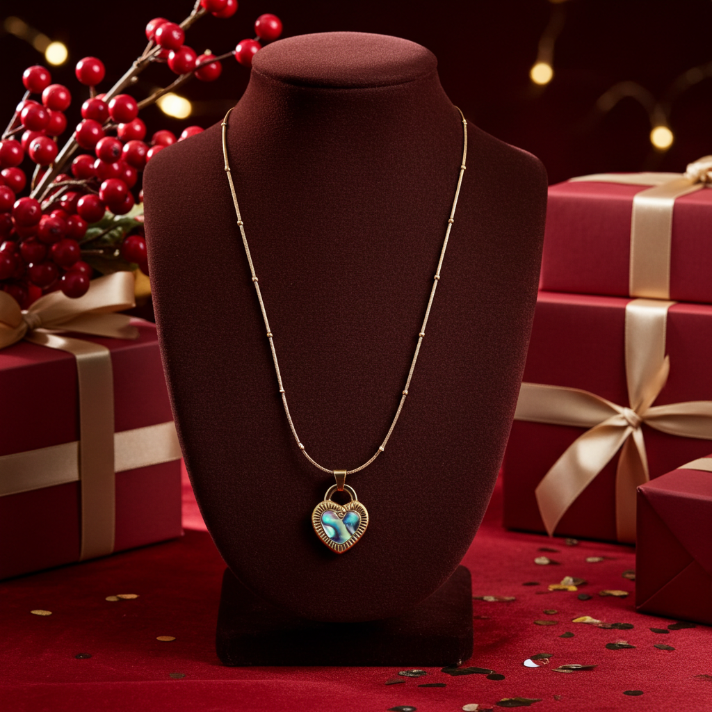 Crafted with care and plated in radiant 18K gold, this piece features a heart-shaped pendant in iridescent abalone tones that shift beautifully in the light for a unique, eye-catching look.