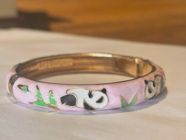 18K Gold-Plated Panda Enamel Floral Bangle