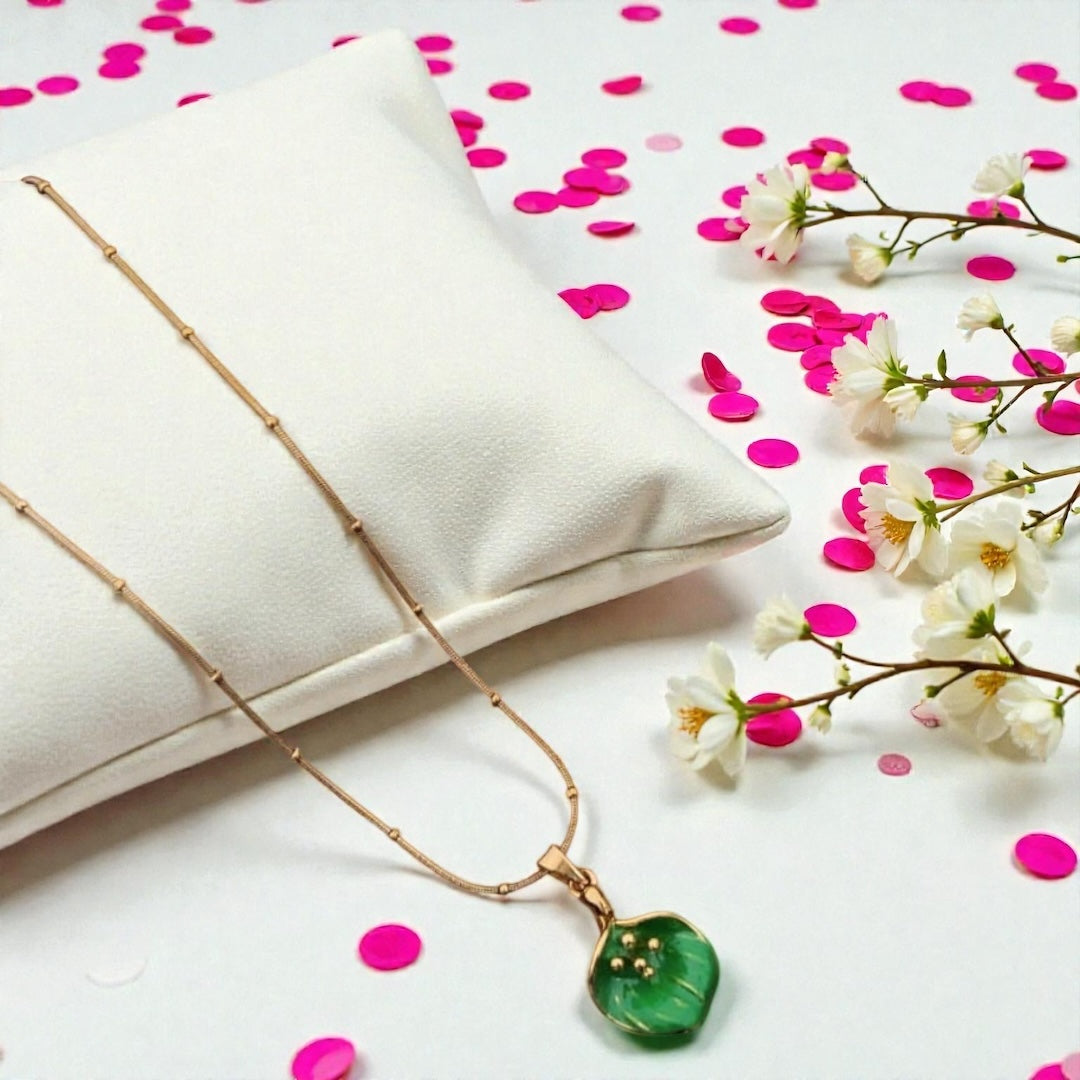 ✨ A playful necklace that blends cute charm with a touch of luxury. Plated in radiant 18K gold, this piece features a glossy green apple pendant with delicate golden detailing — perfect for adding a fun yet elegant accent to your look.