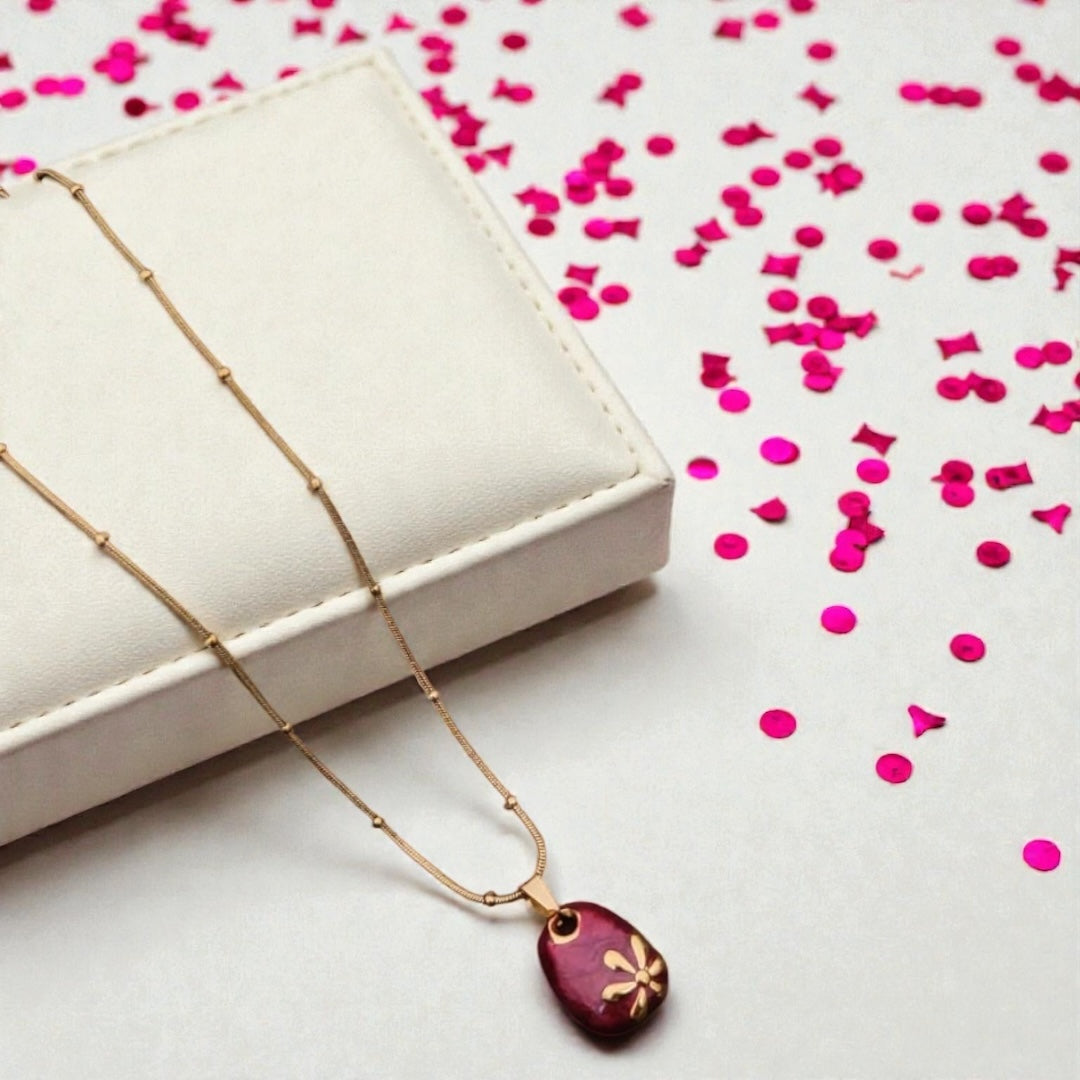 ✨ A playful yet elegant necklace featuring a glossy plum-toned charm with a delicate golden star detail. Plated in radiant 18K gold, this piece adds a touch of color while maintaining a refined and youthful luxury aesthetic.