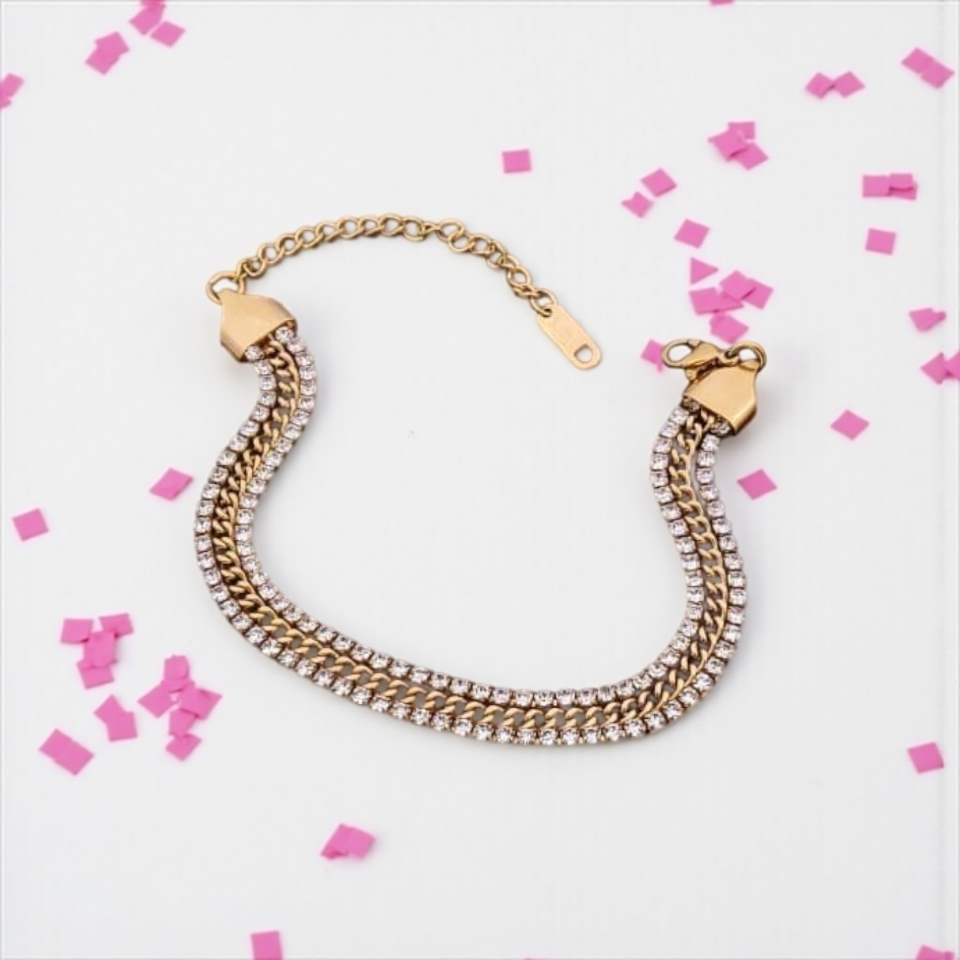✨ A stunning bracelet featuring a flexible crystal-studded mesh chain that shimmers from every angle.