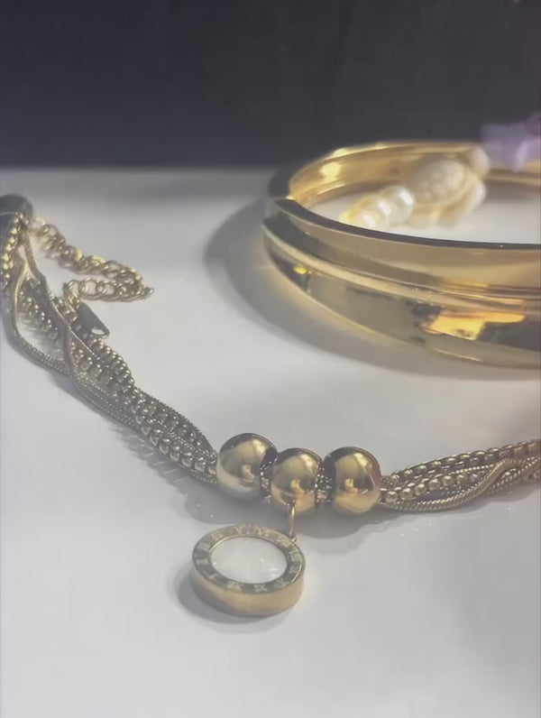 ✨ A luxurious, high-fashion bracelet with layered chains and a reversible Roman-numeral pendant, crafted in a style inspired by iconic Parisian jewelry houses. Cartier-inspired.