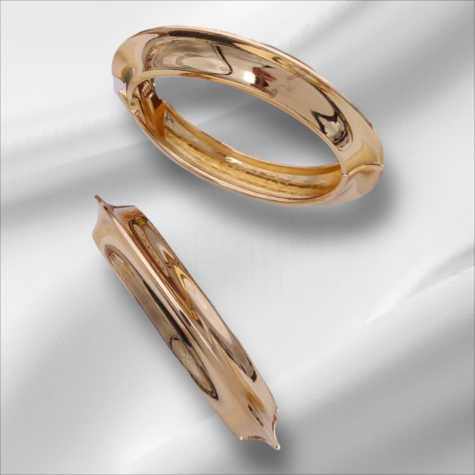 Minimal, glossy, and effortlessly chic. This slim oval bangle features a polished gold finish that gives a smooth, mirror-like shine. Its sleek silhouette makes it perfect for stacking, yet elegant enough to wear on its own for a soft luxury look.