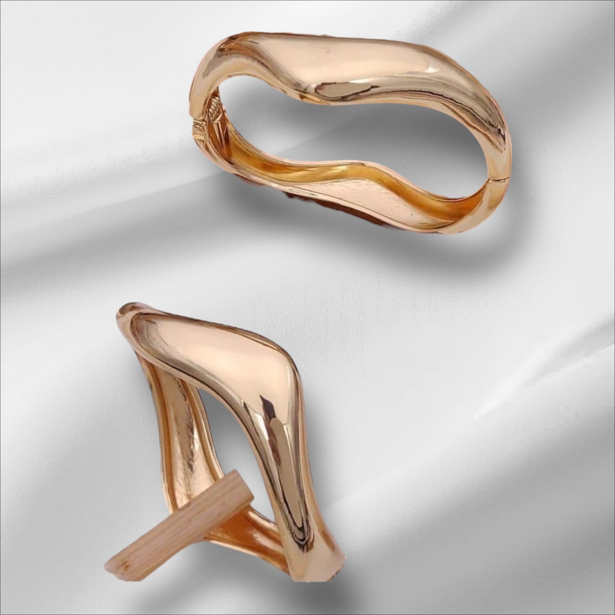 A modern classic — soft curves, bold shine. This sculpted wavy bangle is designed to feel both minimal and luxurious, creating that effortless “model-off-duty” vibe. It catches the light with every movement and stacks beautifully with your other Blue Milkshake pieces.