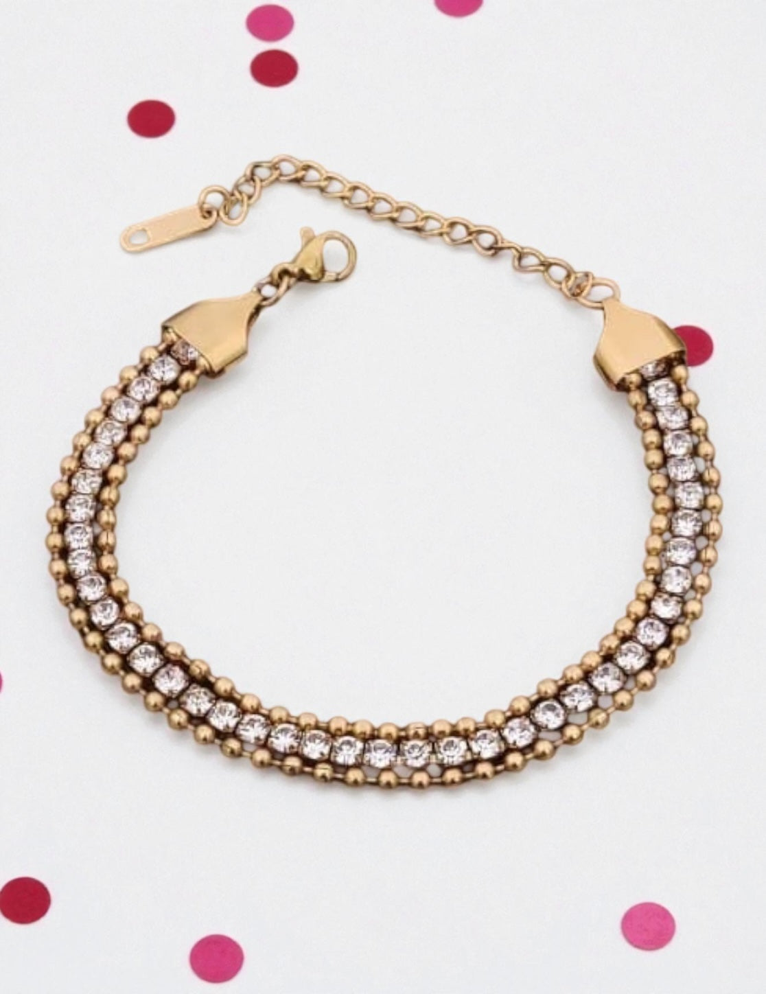 Chain Style: Double-layer crystal bracelet with extender