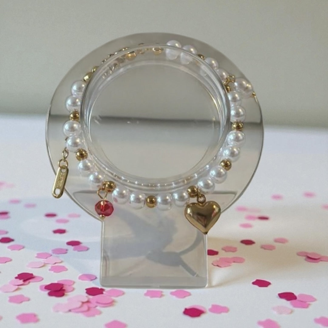 ✨ A soft and elegant bracelet featuring delicate pearls and mini gold charms for a sweet, feminine touch.