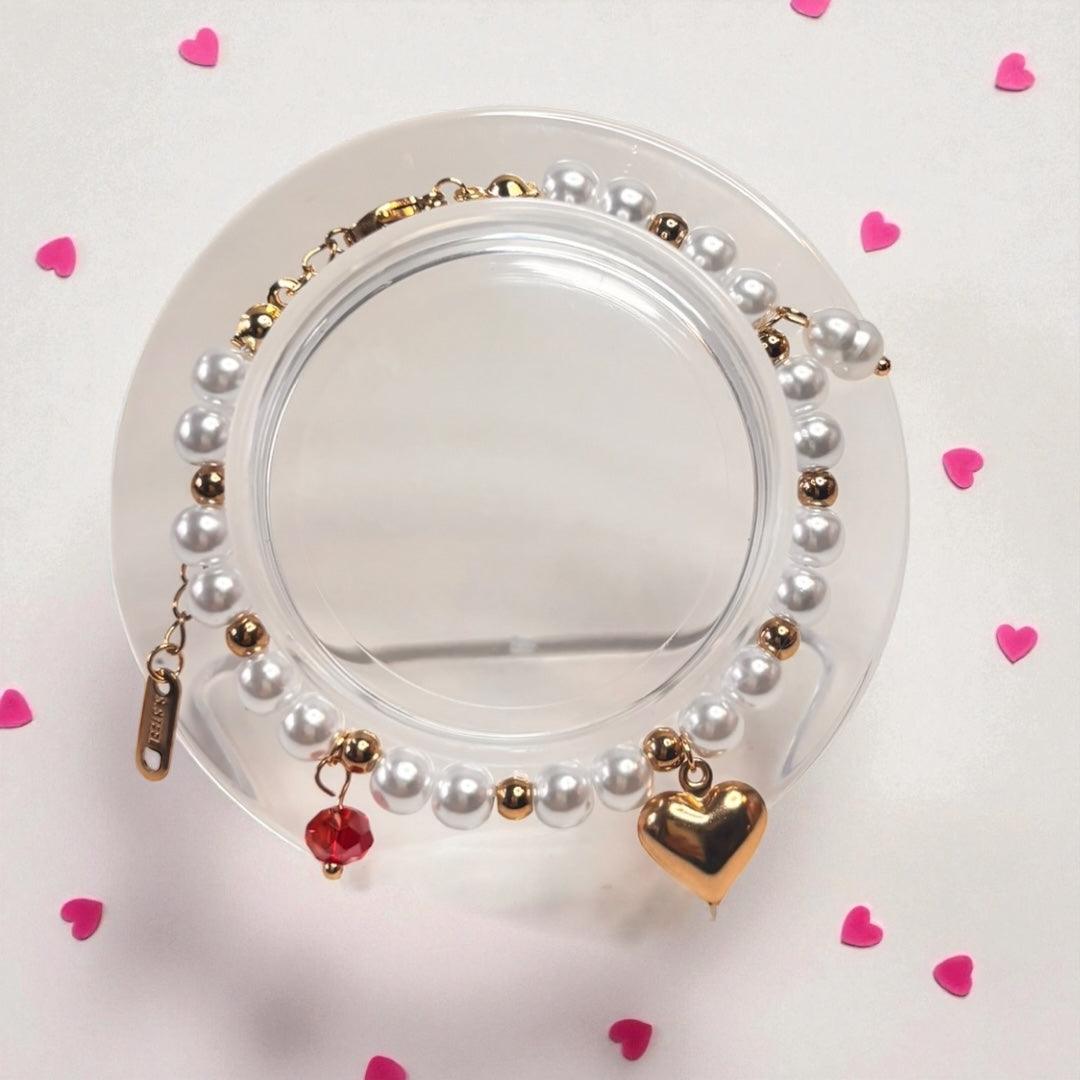 Pendant/Stone/Design: Pearl beads with heart and bar charms