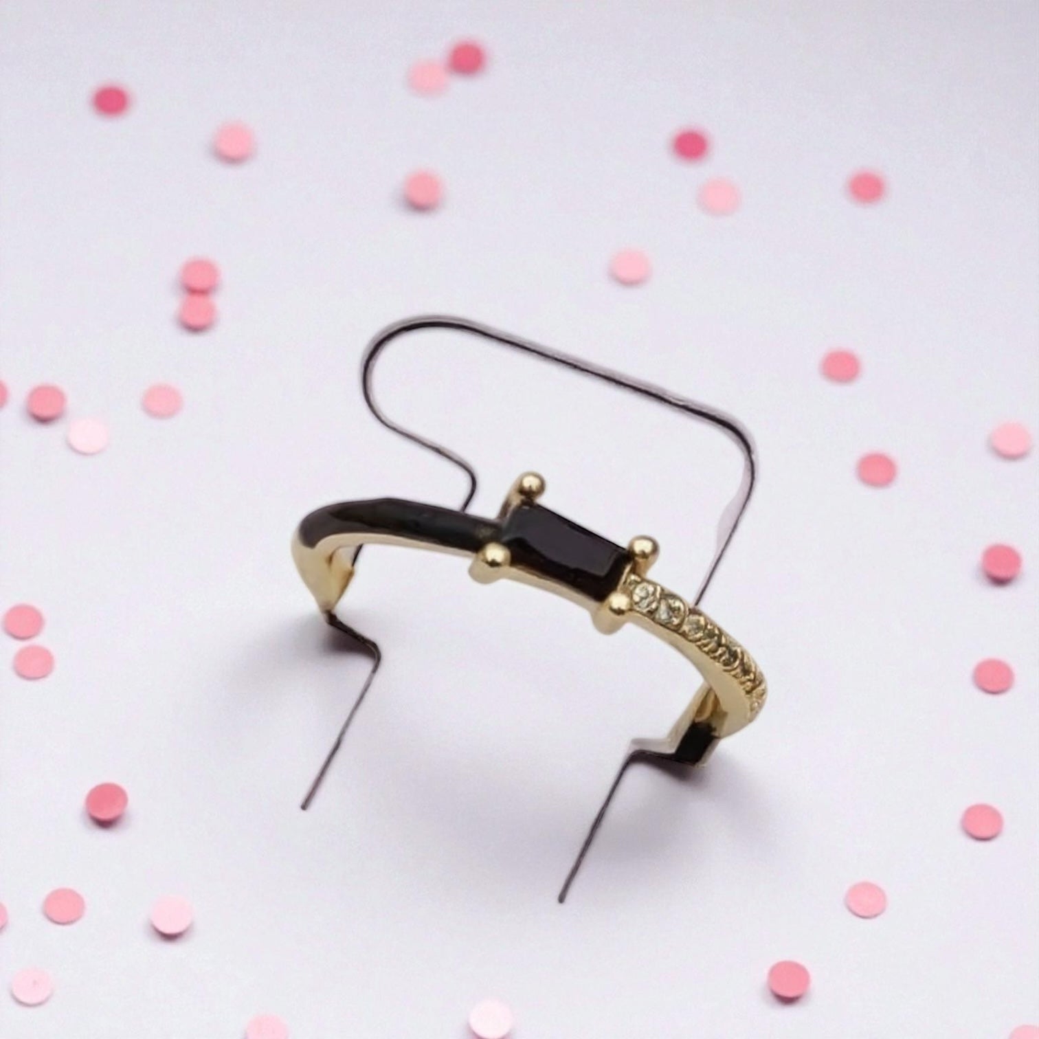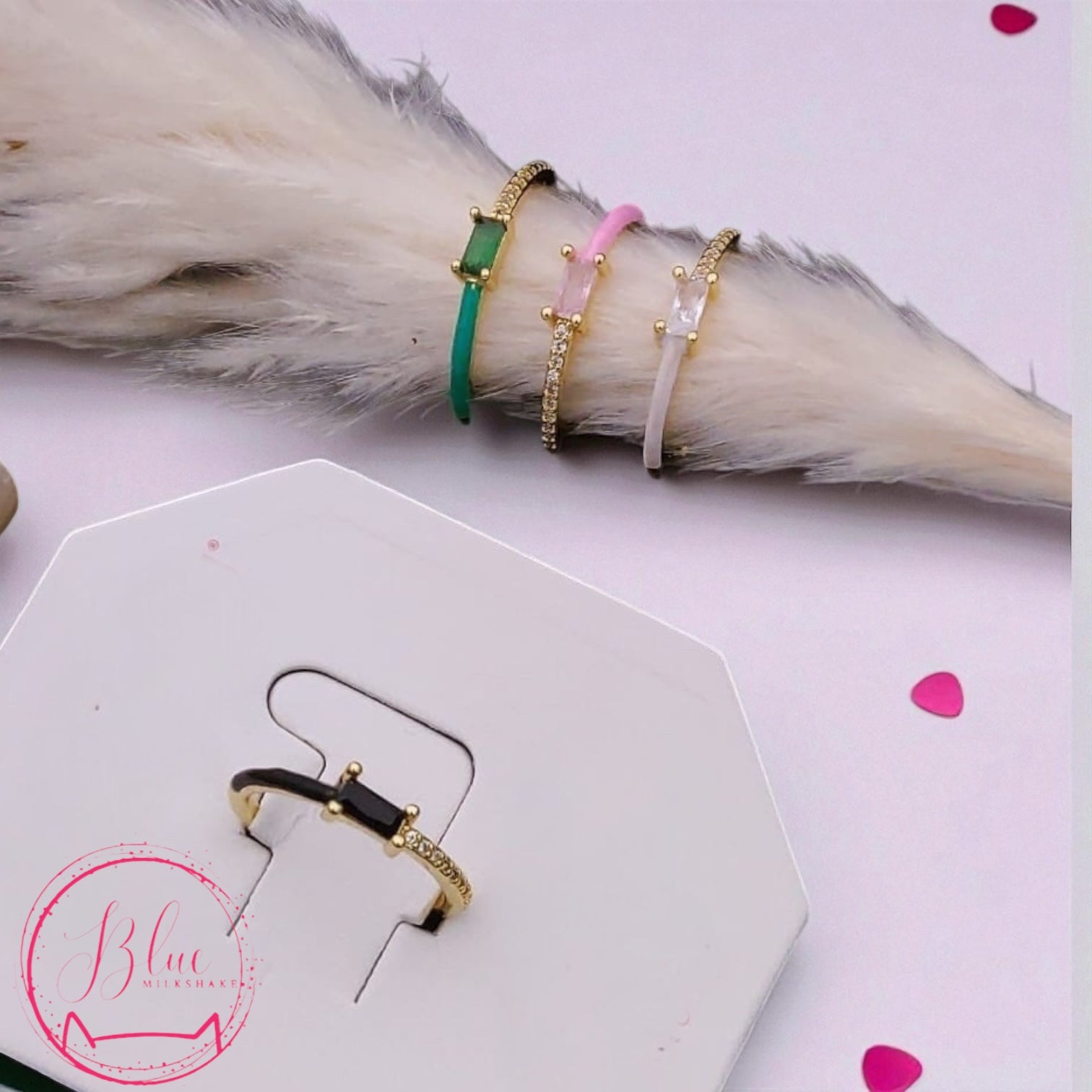 • Design: Rectangle-cut center stone with micro-pavé crystal band and slim enamel detail