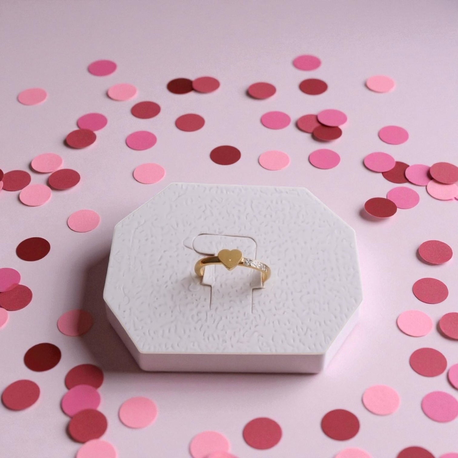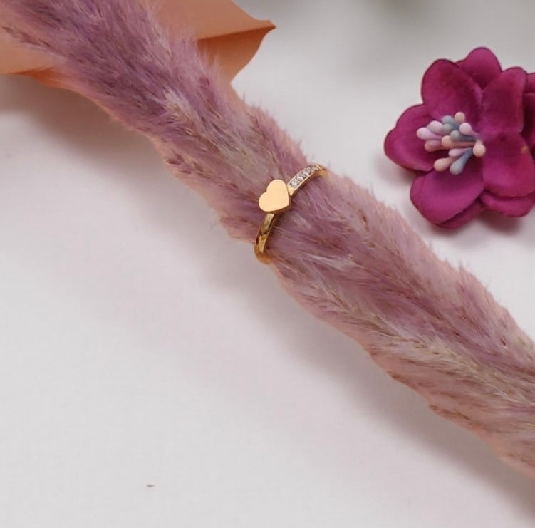 ✨ A soft, romantic ring featuring a smooth heart charm paired with a delicate crystal-studded band.