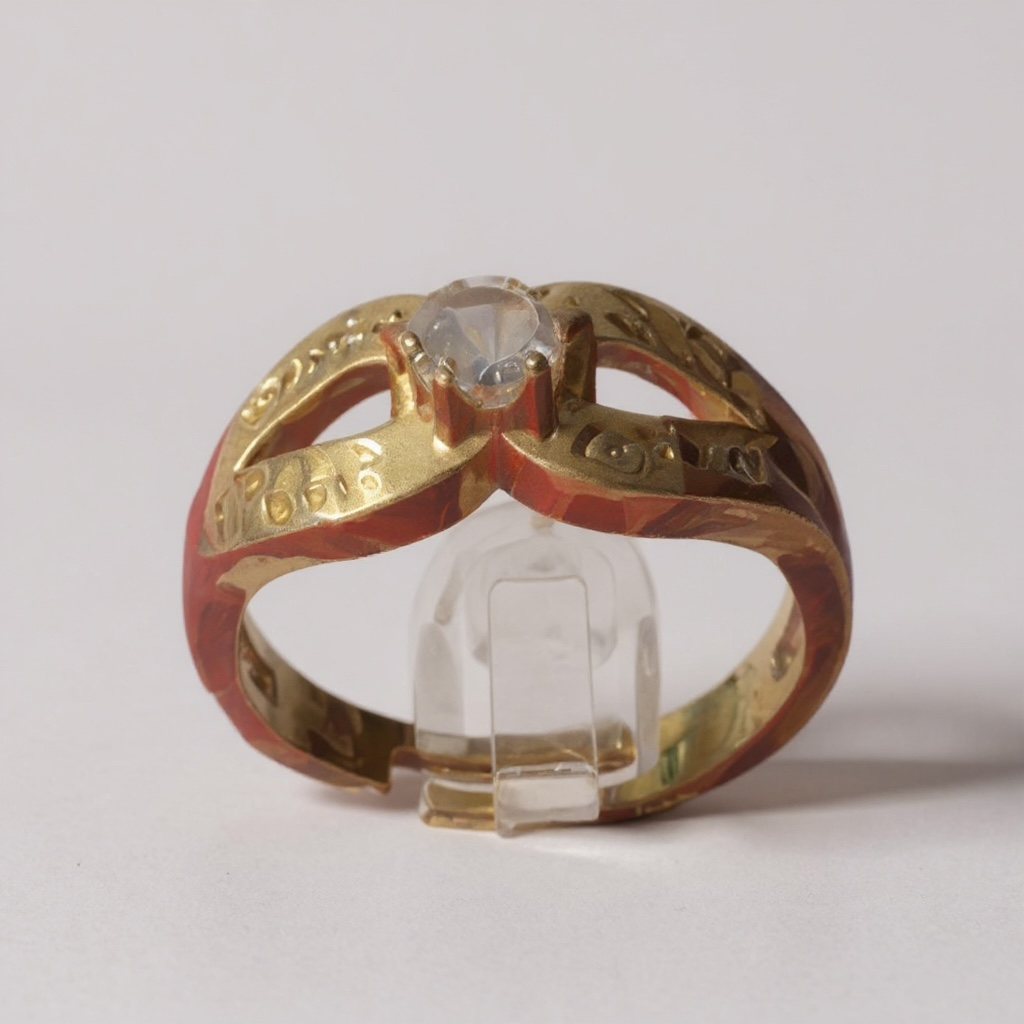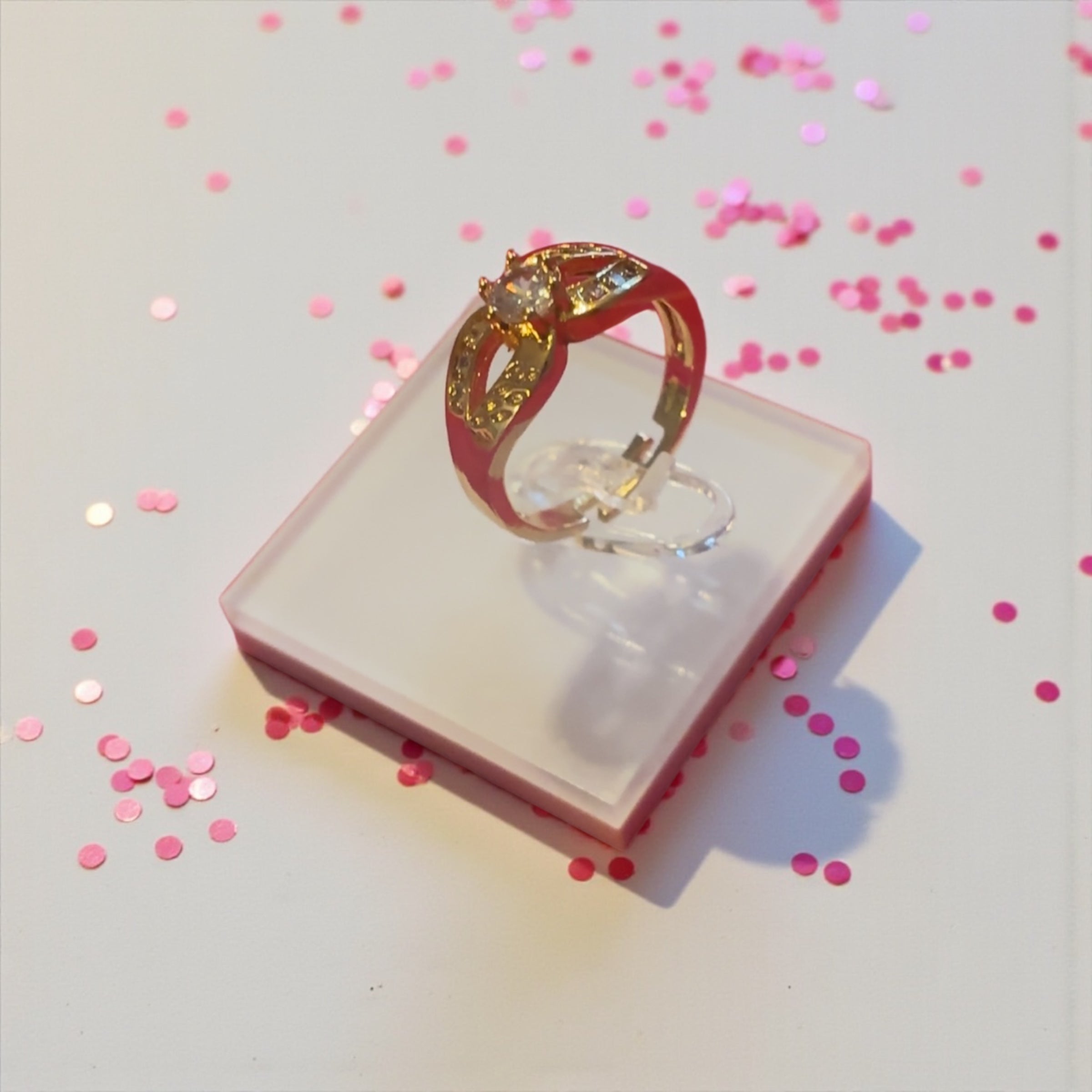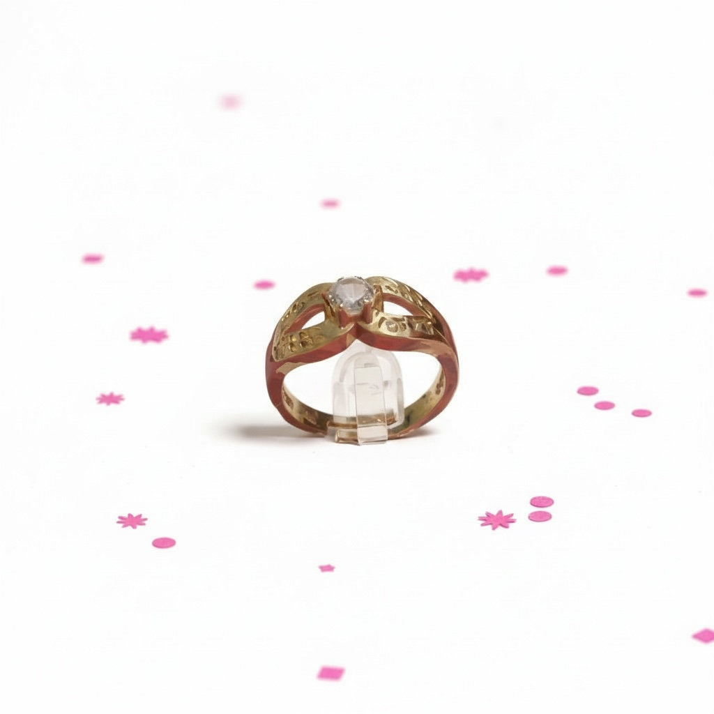 A romantic statement with a modern twist. This 18K gold-plated ring features an elegant intertwined design finished with a softly sparkling stone that catches the light beautifully. The sculpted details give it a luxurious yet playful feel — perfect for everyday elegance or special moments.